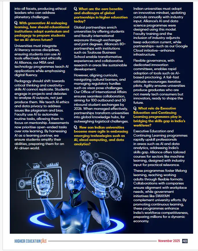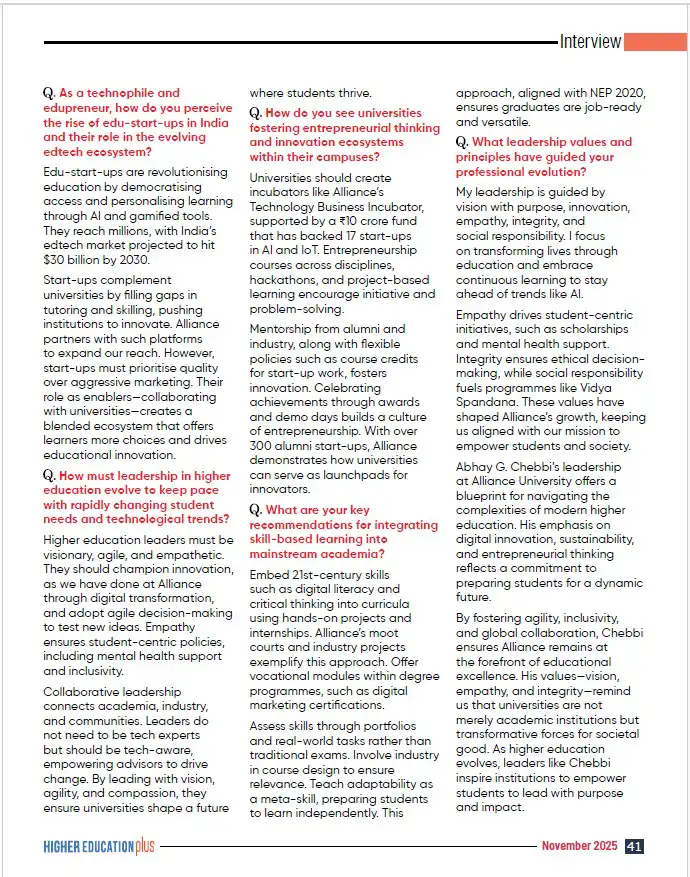 Alliance University Leads the Way in AI - Mr. Abhay G Chebbi, Pro-Chancellor Publication: Higher Education Plus