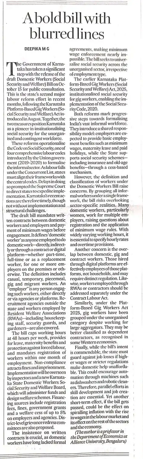 A bold bill with blurred lines - Dr. Deepika M. G., Professor, Alliance University Publication: Deccan Herald