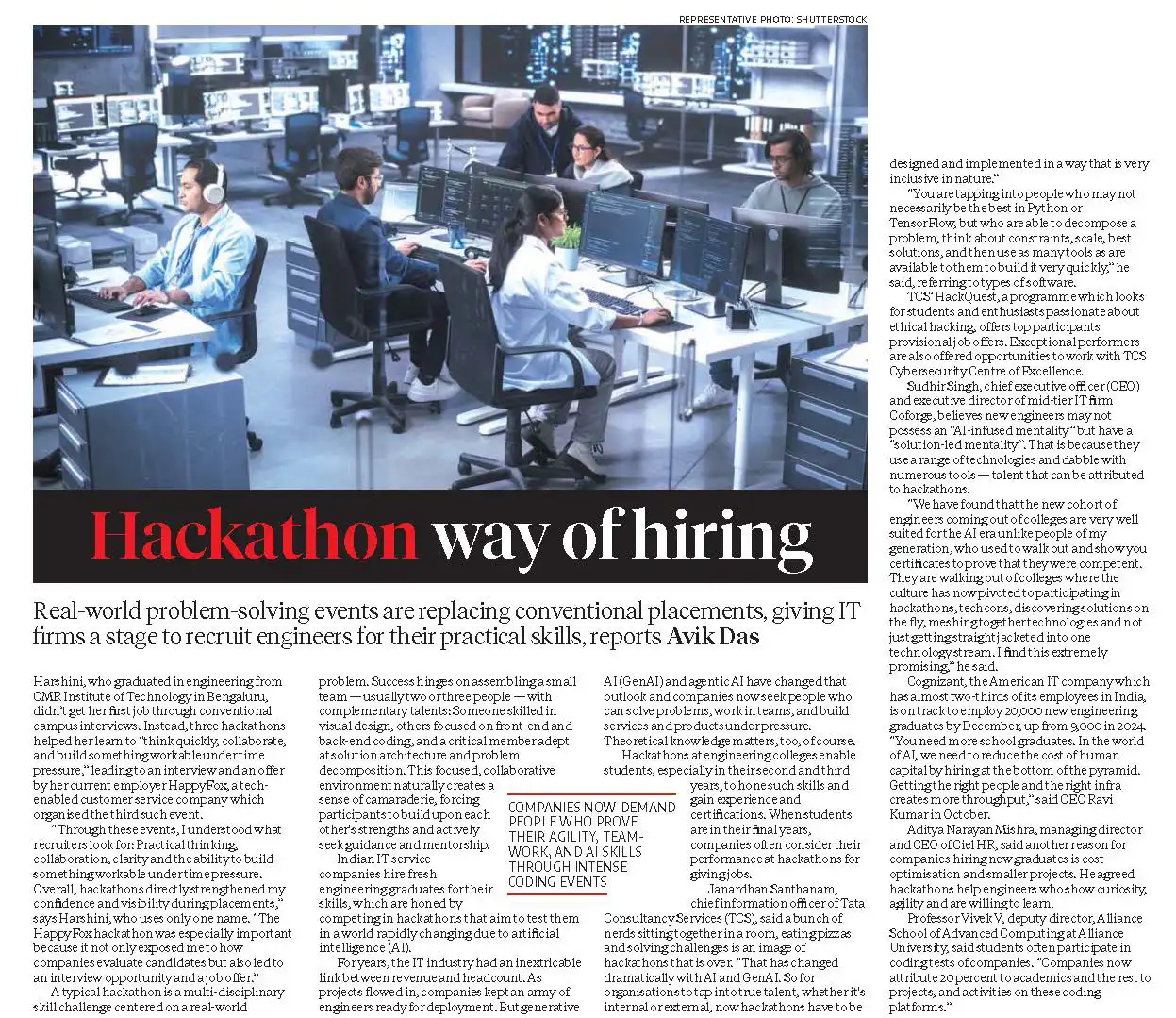 Hackathon way of hiring - Dr. Vivek V, Deputy Director, Alliance School of Advanced Computing Publication: Business Standard