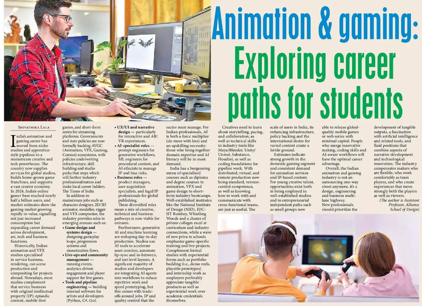 'Animation & gaming:Exploring career paths for students' - Ms. Shivatmika Lala, Assistant Professor, Alliance School of Design Publication: Hans India- All Editions